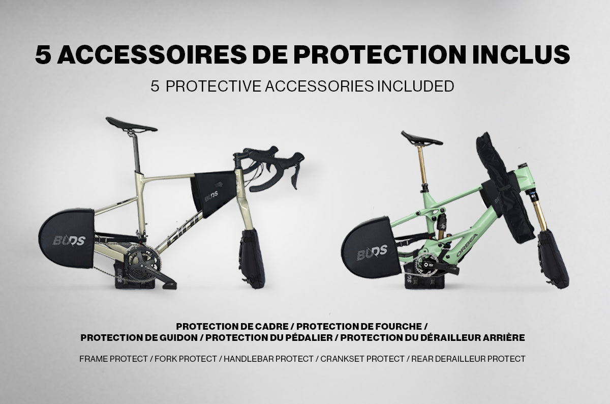 Wir sind nie vor einer falschen Handhabung während des Transports gefeit, die das Fahrrad oder seine Struktur beschädigen könnte. Deshalb haben wir eine ganze Reihe von innovativem Zubehör entwickelt, das Ihr Fahrrad effektiv schützt und einen sicheren Transport gewährleistet.
