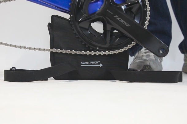 Er ist mit allen Straßen- und MTB kompatibel und lässt sich mithilfe von zwei Clips in Sekundenschnelle unter dem Tretlager Ihres Fahrrads anbringen, nachdem Sie die beiden Laufräder abgenommen haben.