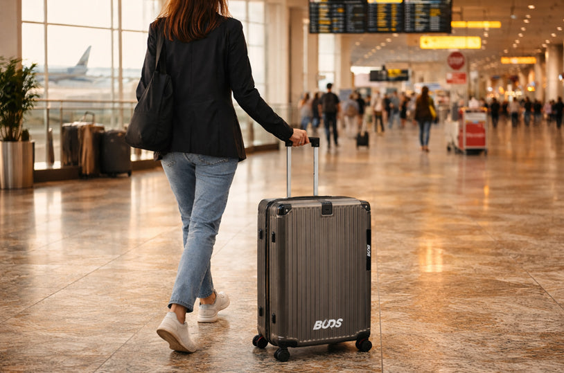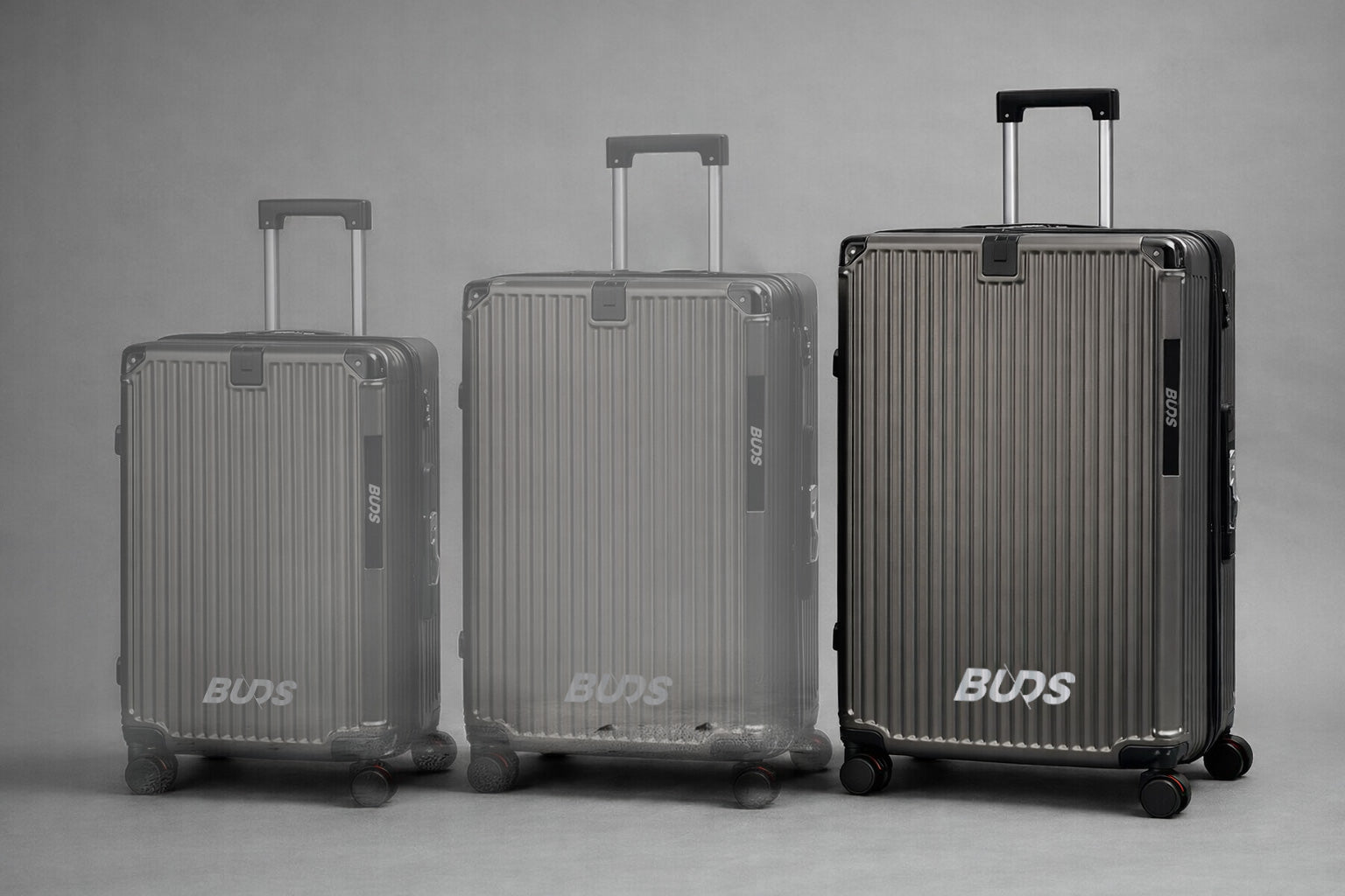 Available in three sizes (or as a set of three suitcases), it adapts to every type of travel thanks to its spring-loaded wheels for optimal comfort : Small for traveling light, Medium for a versatile size, and Large to maximize your storage capacity. A simple, elegant, and durable solution for traveling with practical and reassuring luggage.