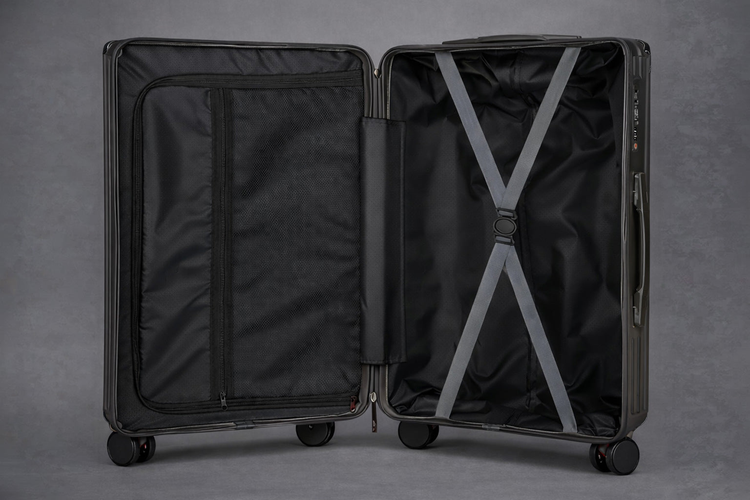 • TSA combination lock & 360° spring-loaded casters